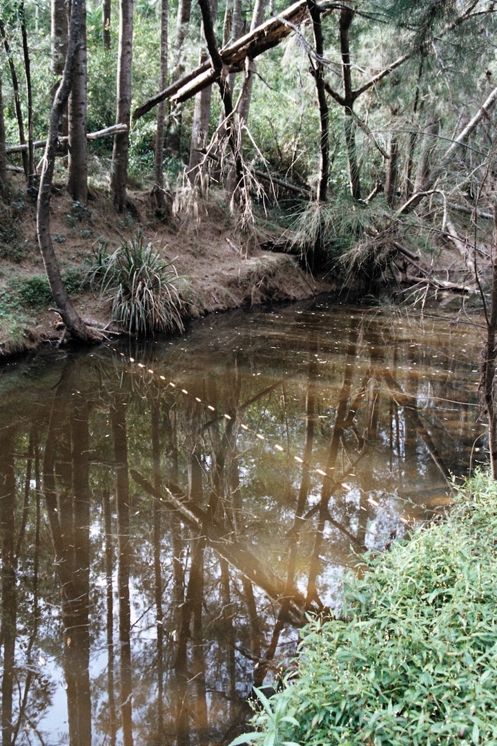 Here at Wollombi the stream was quietly stitched up with five float lines tethered to the banks above and below a weir. As a visitor said when he came across the work, ‘that’d be illegal where I come from’, meaning setting a net right across a stream.